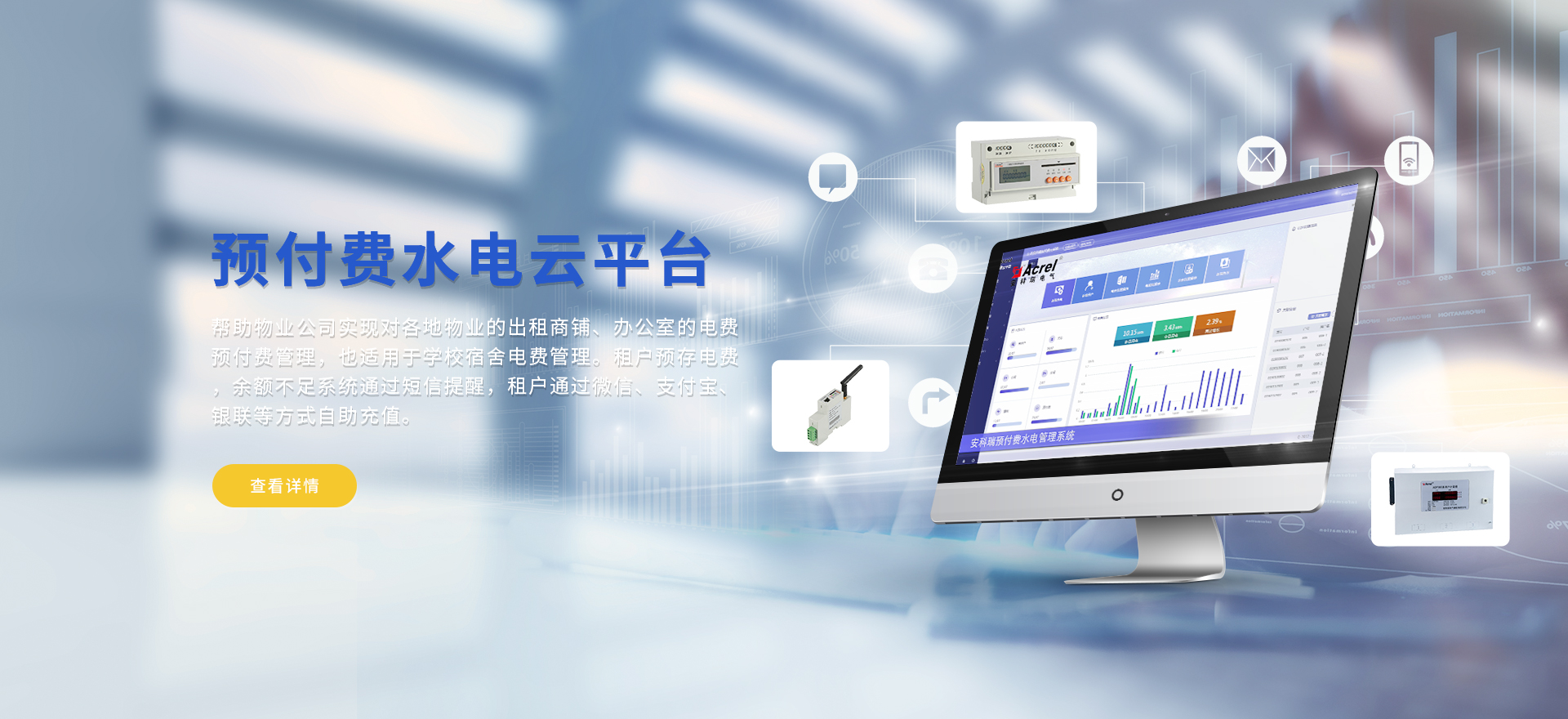 安科瑞提供的解決方案包括Acrel-EIoT能源物聯網云平臺變電所運維云平臺、安全用電管理云平臺、環保用電監管云平臺、智慧消防云平臺、能源管理云平臺、工業企業能源管控平臺、遠程預付費云平臺、餐飲油煙監管云平臺、電動汽車/電瓶車充電樁收費管理云平臺、電力監控/無線測溫系統、電能質量治理系統、電氣火災監控系統、消防設備電源監控系統、防火門監控系統應急照明和疏散指示系統、智能照明控制系統、醫用隔離電源絕緣監測系統等,幫助用戶實現能源智能化、可視化、精細化管理,提高用能效率和用能安全,為企業節能降耗和實現能源數字化建設提供數據服務。